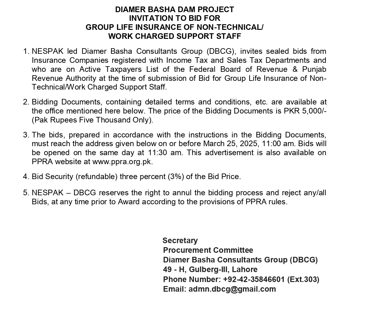 DIAMER BASHA DAM PROJECT INVITATION TO BID FOR SUPPLY OF OFFICE EQUIPMENT